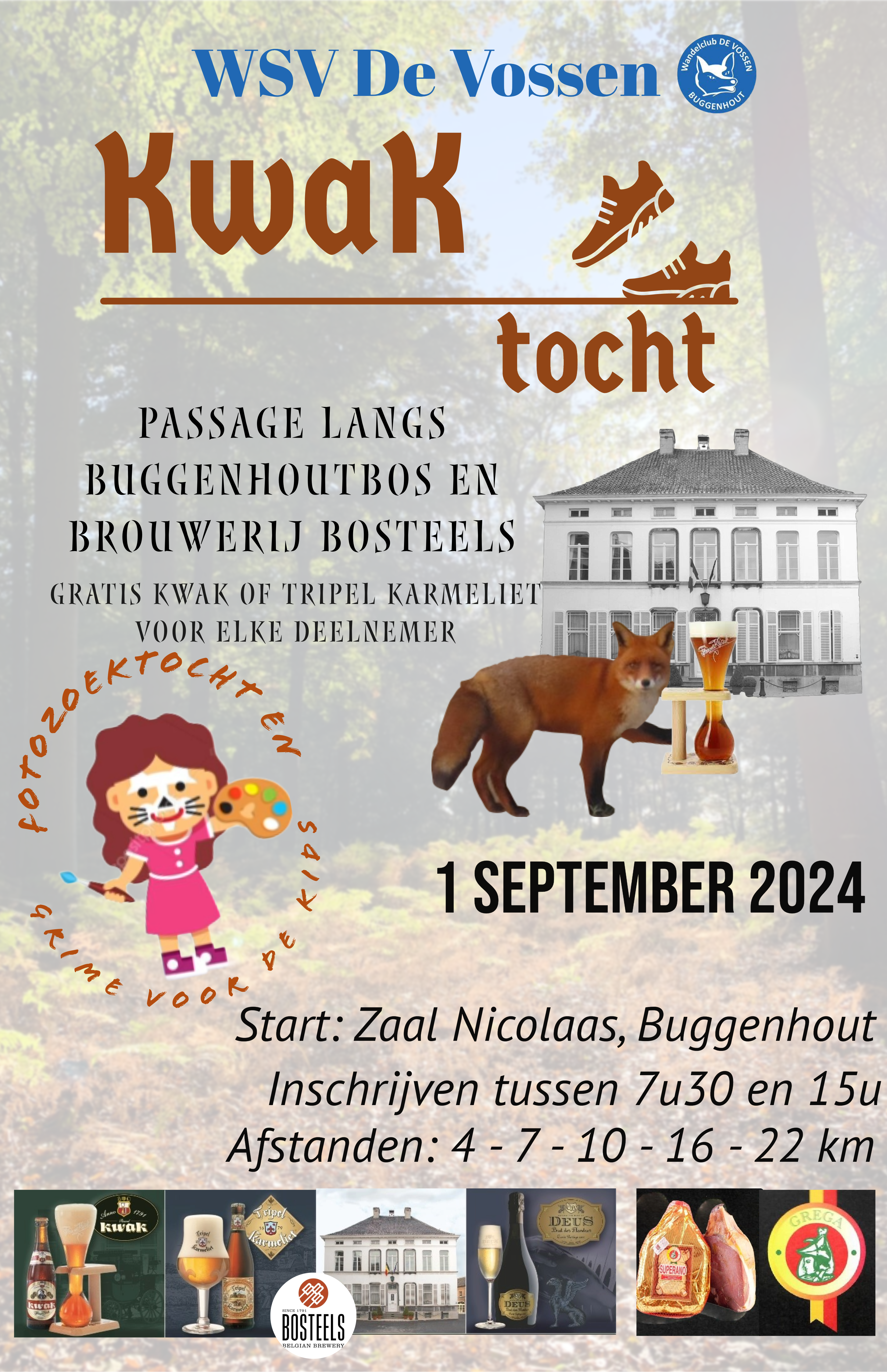 Onze ‘Internationale Kwaktocht‘ vindt traditioneel plaats op de zondag tijdens de septemberkermis in het centrum van Buggenhout, en valt in de ‘Maand van de Sportclub‘. De parcours, met afstanden tussen 4 en 22 km, lopen langs rustige en landelijke wegen rondom het prachtige Buggenhoutbos.
